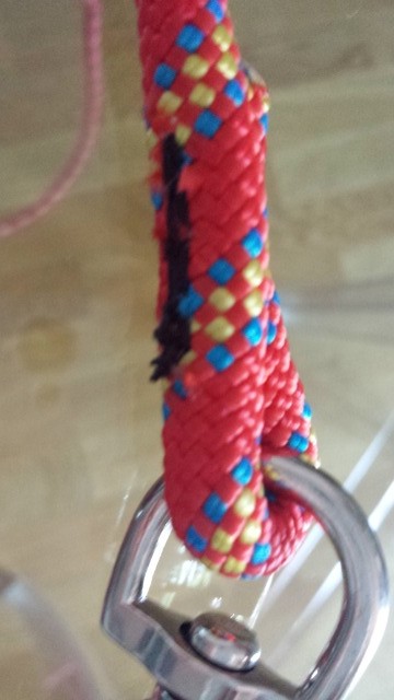 Pour la longe ça y est : cordelette (6m) + chambre à air et ce matin je suis allée dans une sellerie : le sellier est très sympa et de bon conseils ; il a fait une piqûre, bien solide : le mousqueton est bien fixé et la fixation n'est ni grosse ni lourde